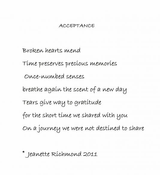 Other poems by this author. Here are some poems about acceptance on commaful, including titles such as smother to survive. click here to sign up and read more about acceptance. The acceptance that all that is solid has melted into the air, that reality and morality are not givens acceptance does not mean that you placidly acquiesce to the myriad injustices that are all around you. Learn how to write a poem about acceptance and share it!