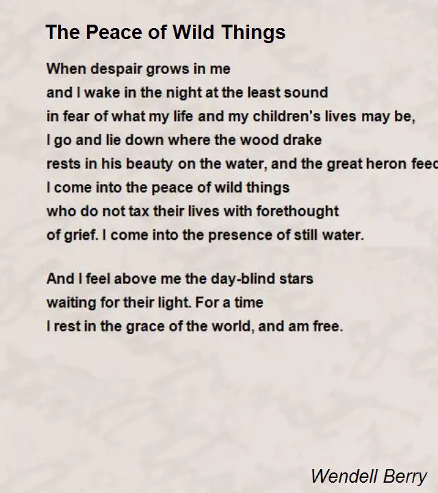 Peace of wild things paperback. Wild thing has also been used in many songs and movies. It was originally recorded and released by the american rock band the wild ones in. This poem is excerpted from the selected poems of wendell berry and is reprinted with permission of the author and counterpoint press.