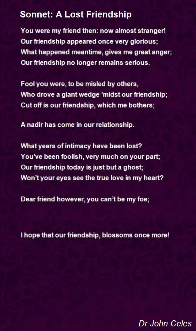 I had lost my best friend 1 week before christmas. A collection of friendship poems and poetry from the most famous poets and authors. Special friend quotes best friend poems friend sayings beautiful friend quotes thank you quotes for friends special friends real friends hug losing a true or real friend is heartbreaking. A group of twenty friendship poems looking at friendship with one another, the world, canines, lost friends, and terrible friends.
