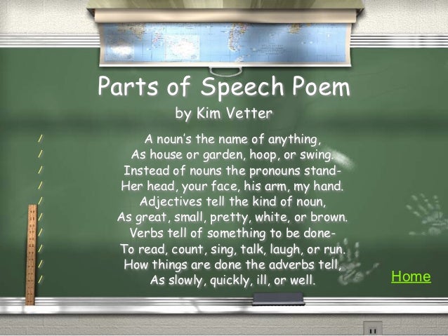 Get Parts Of Speech Poem Gif. Parts of speech poem is a rhyme to help you understand grammar, listening and pronunciation. Three little words we often see are articles, a, an and the.