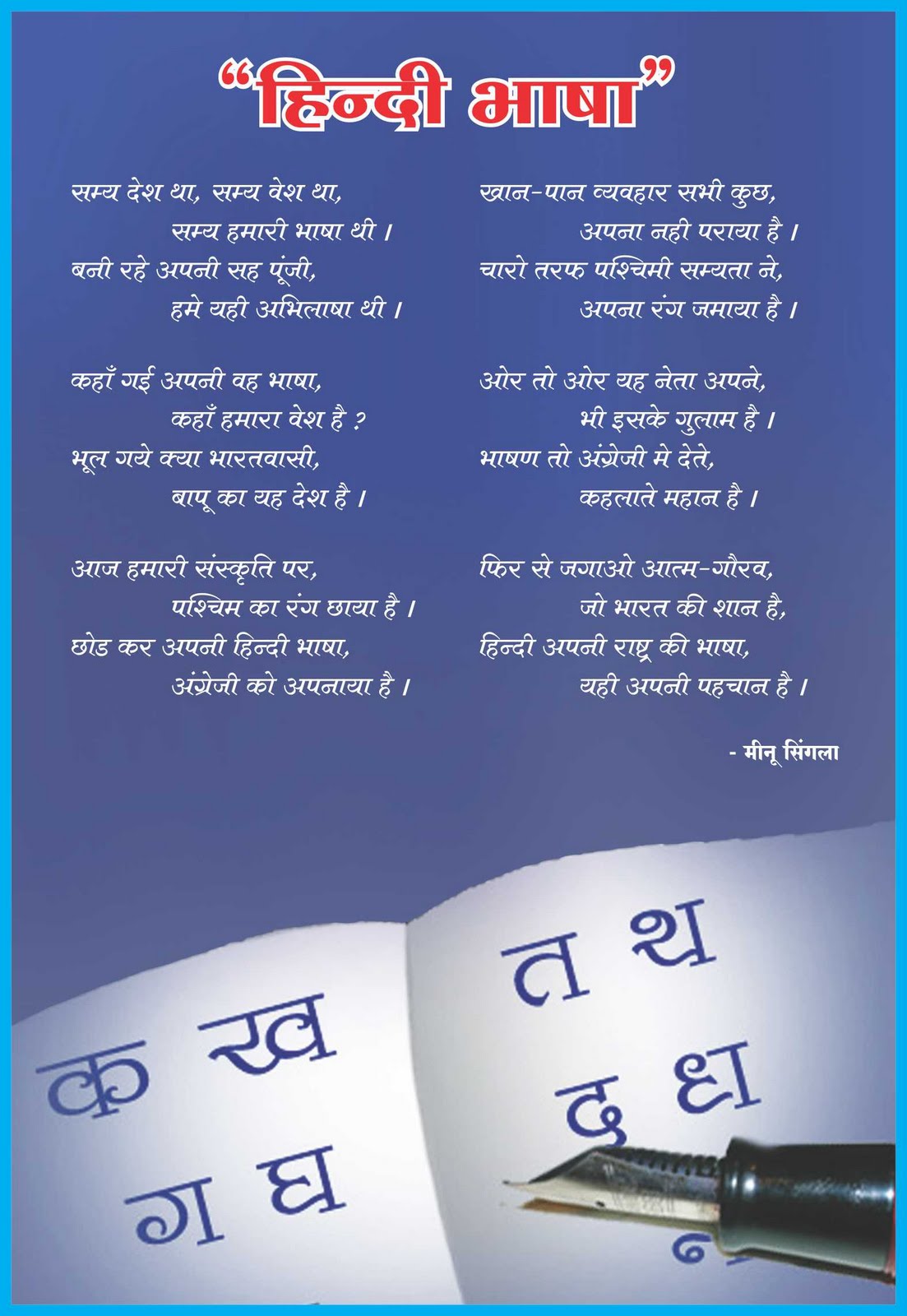 निशुल्क पढ़ें हिन्दी कविताएं, बच्चों की कविताएँ, हिंदी कविता और देखे विशाल हिन्दी कविताओ का संग्रह! Recently we've added punjabi songs! हाथी राजा सबको भाते, बस केले और गन्ने खाते। Patriotic poem hindi for kids funny kavita hindi poem on animals hindi nature poems for kids diwali poem hindi of 10 lines poems for kindergarten students silly poems any poem hindi desh bhakti poem hindi for kids short poems for kindergarten simple hindi poems poems for children to recite.