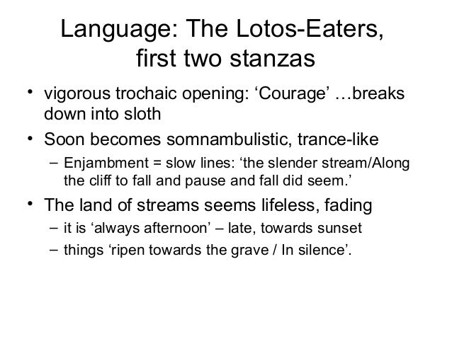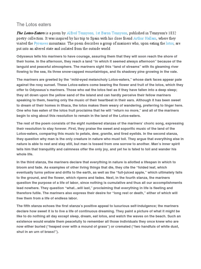 Tennyson's and rossetti's mediated addiction. The rest of the poem consists of the eight numbered stanzas of the mariners' choric song. A beautiful hand scripted excerpt from tennysons the song of the lotus eaters. Homer's description of the visit to the land of the lotus eaters is rather.